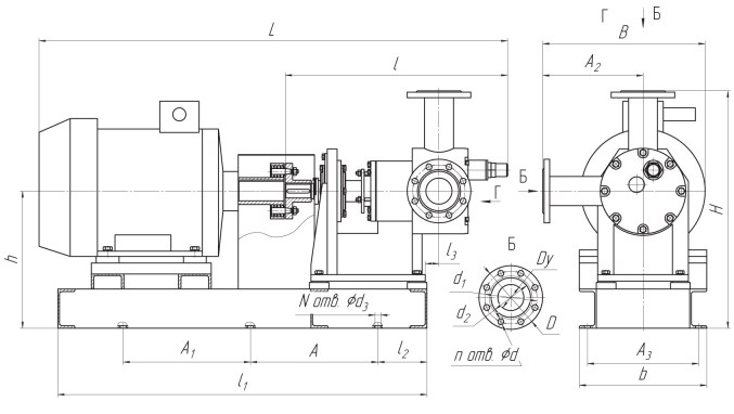 Чертеж и присоединительные размеры насосного агрегата ПНШ